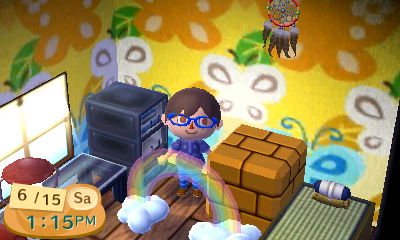 The Able Sisters – Mabel, Sable, and Labelle – run the combination clothing and accessory shop on Main Street. Each day they rotate the clothing your character can wear. It can range from the costumey – an Egyptian pharaoh’s robe, a motorcross helmet, viking horns – to the practical – stonewashed jeans, a plaid shirt, wire-frame glasses.