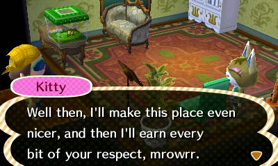 Anyway, I expected Kitty to be the snobby type. There is often one in the town, usually a cat, done up in fancy makeup and expensive-looking clothes, and preoccupied with designer labels, frou-frou furniture, and maintaining a classy appearance.